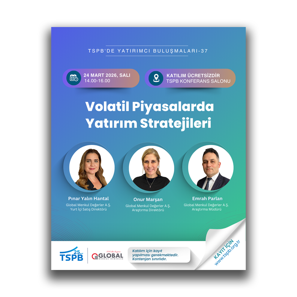 TSPB’ de Yatırımcı Buluşmaları etkinliğinin otuz yedincisi Global Menkul Değerler A.Ş. iş birliğiyle 24 Mart 2026 Salı günü 14.00-16.00 saatleri arasında Birliğimiz Konferans Salonu’nda…